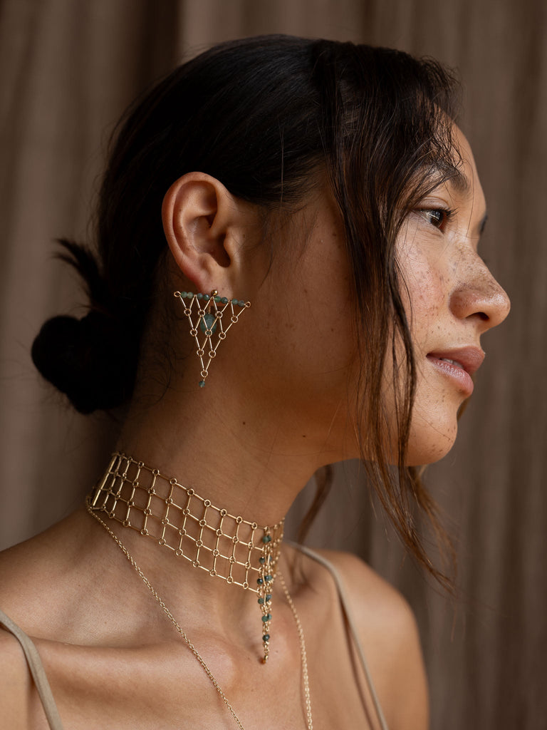 Embrace your divine essence and radiate confidence. Each link is meticulously crafted to gracefully hug your neck, offering the flexibility to wear it high or low. Unleash your inner goddess and activate your upper grid with this exquisite talisman. Let your voice resonate with grace and your movements speak volumes.