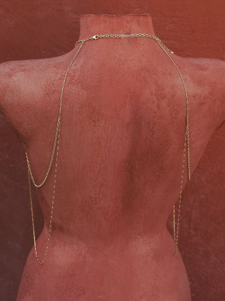Elaborada con cuidado y precisión, Bra Body Chain está diseñada para imitar la forma de un sujetador, con delicadas cadenas que contornean y acentúan las curvas naturales del cuerpo. Las cadenas delanteras abrazan el busto, proporcionando una exhibición llamativa, mientras que las cadenas traseras añaden una capa extra de atractivo y sofisticación.
