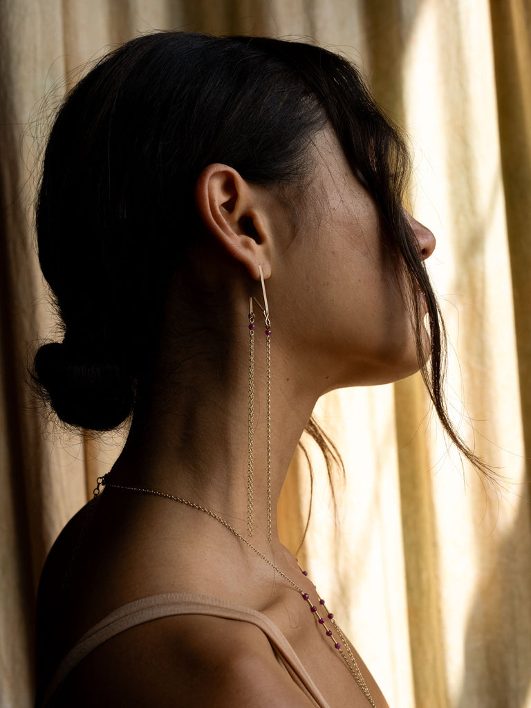 Pendiente corto con piedras preciosas en bucle de Doubelicious