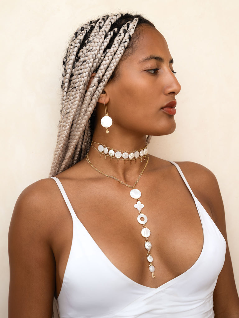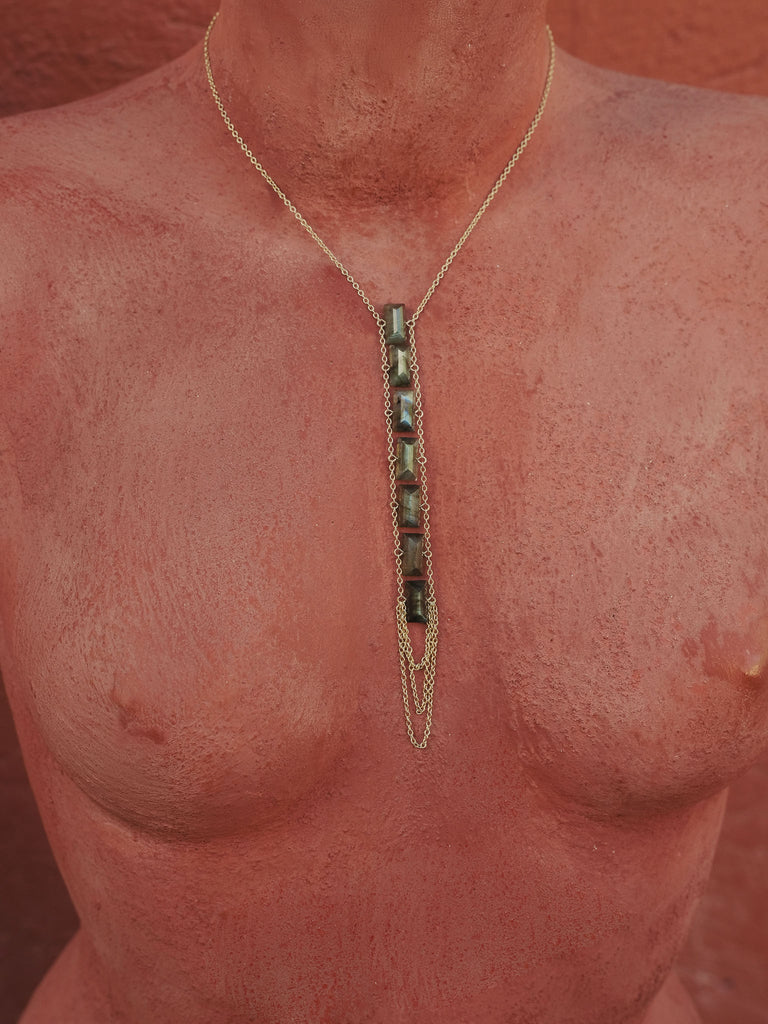 The "Chakra Flow" Necklace embodies the fluidity of energy as it moves through the body, connecting each chakra and promoting balance and harmony. The design allows for a gentle step up and down, representing the ebb and flow of energy and the continuous journey of spiritual growth and awareness.